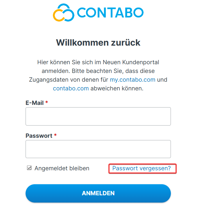 - Deine Anmeldedaten für my.contabo.com wurden dir nach deiner ersten Bestellung in der E-Mail "Ihre Anmeldedaten" geschickt.