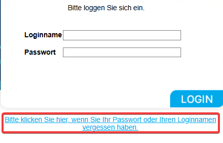 2. Klick auf den Button "Bitte klicken Sie hier, wenn Sie Ihr Passwort oder Ihren Loginnamen vergessen haben."
