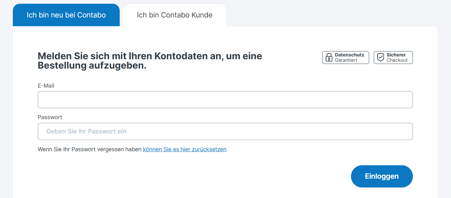 - Wenn du bereits Kunde bist: Logge dich mit deinem bestehenden Konto ein und schließe die Bestellung ab.