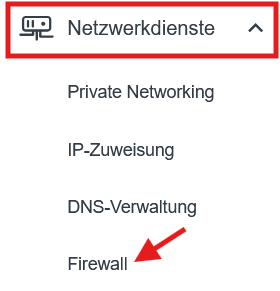2. Geh zum Abschnitt Firewall unter Netzwerkdienste.