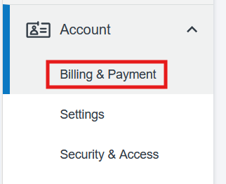 To access it, click on 'Account' on the left side and choose 'Billing & Payment' from the drop-down menu.