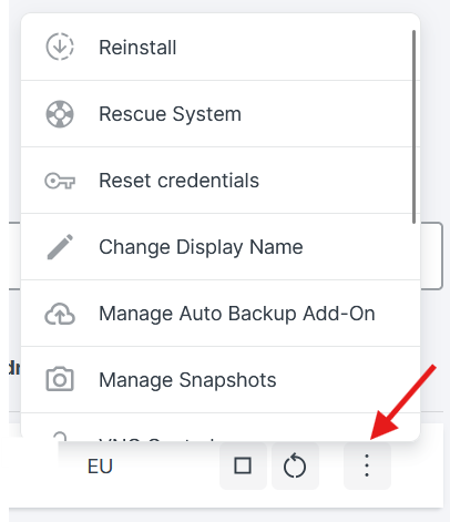 These pages allow you to perform key actions to control your server, such as starting or stopping your servers, starting a rescue system or creating a snapshot (VPS only).