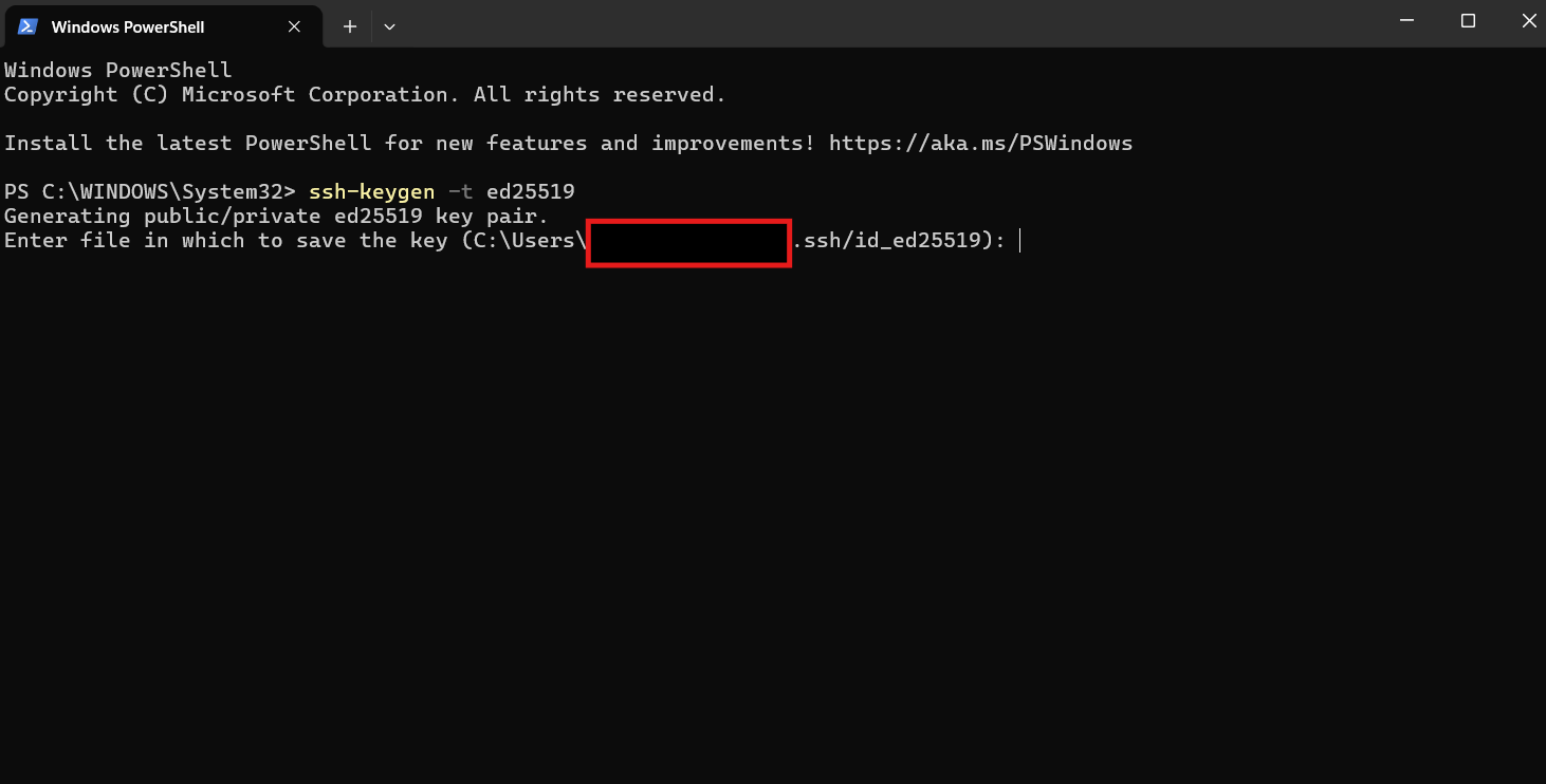 C:\Users\YOUR_USER\.ssh\id_ed25519Public key: